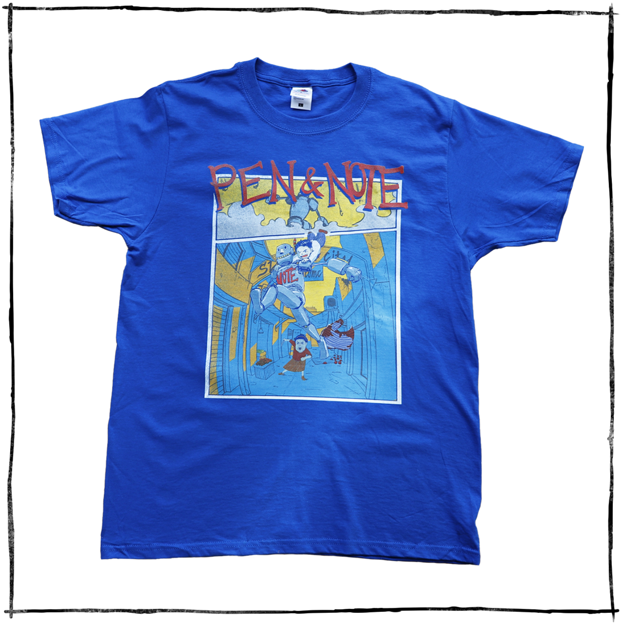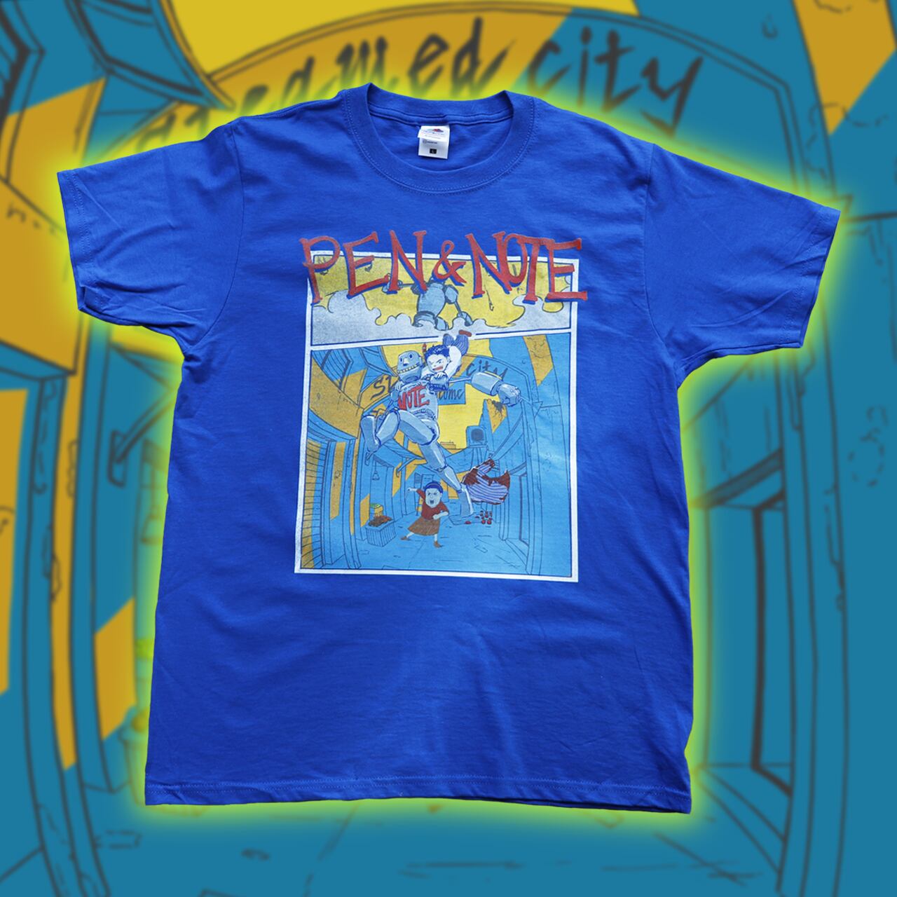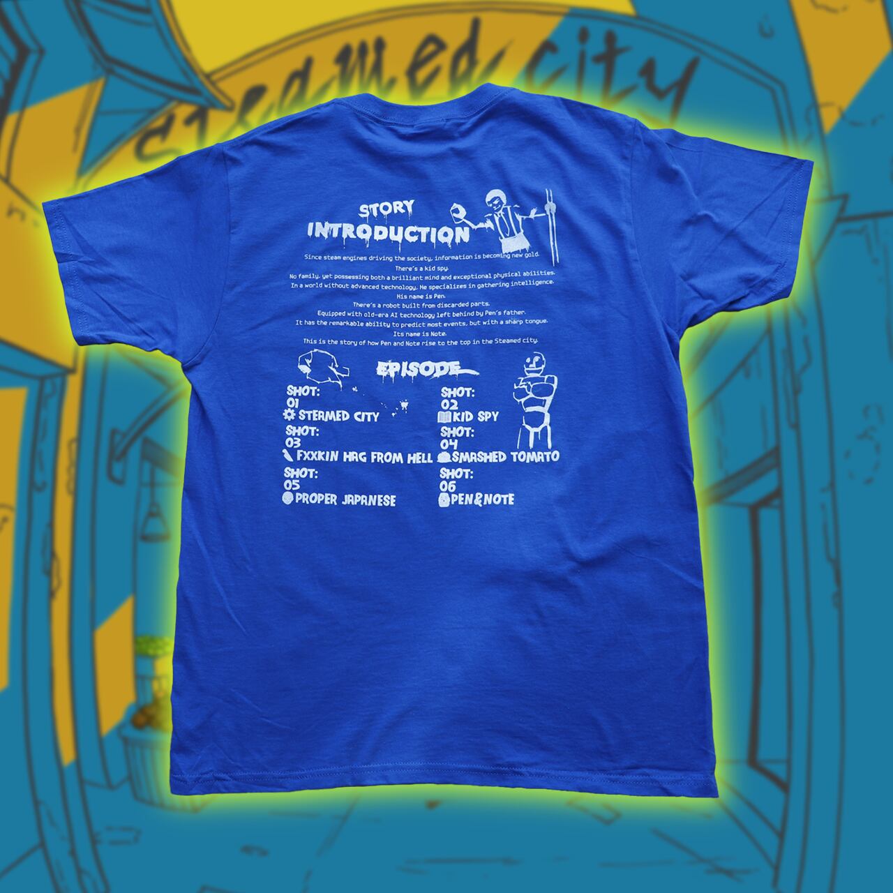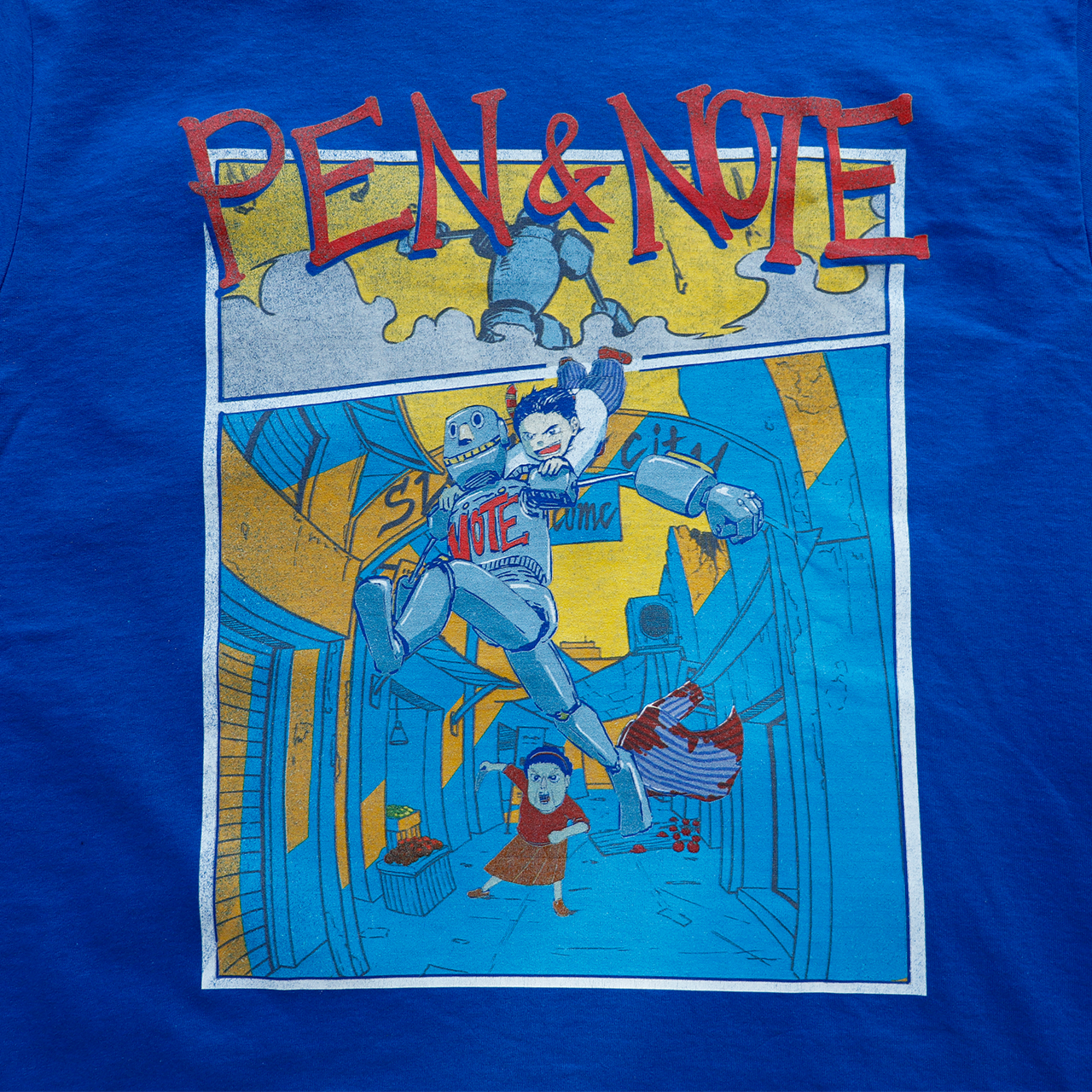 XXXX年に放送された完全オリジナルTVアニメーション『PEN & NOTE』をフィーチャーしたTシャツ。
