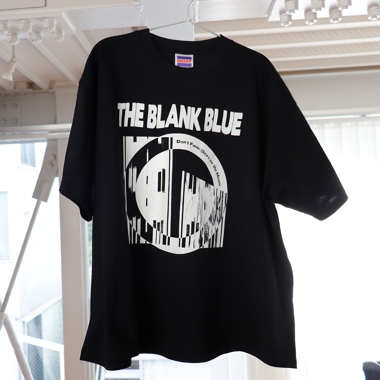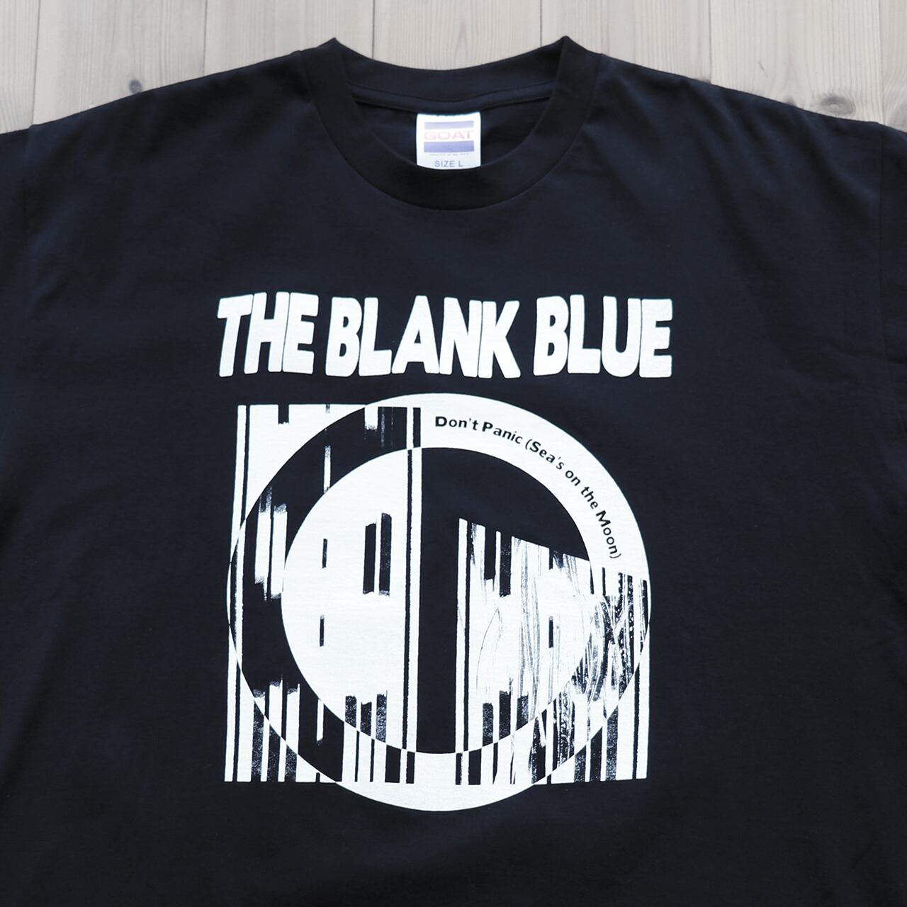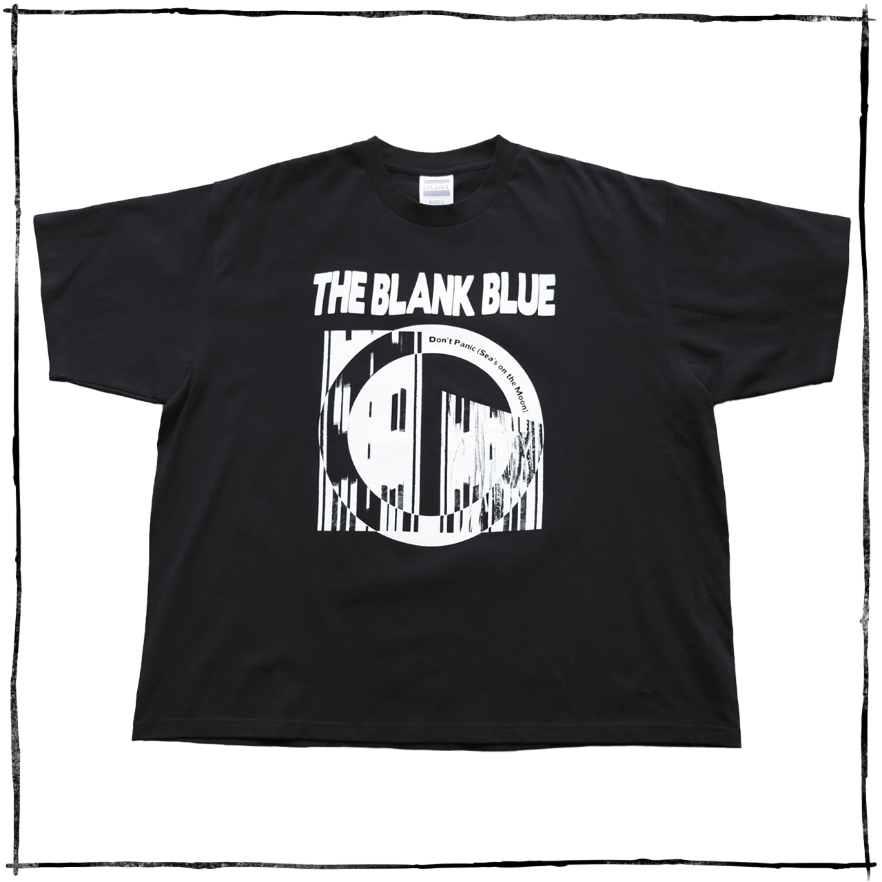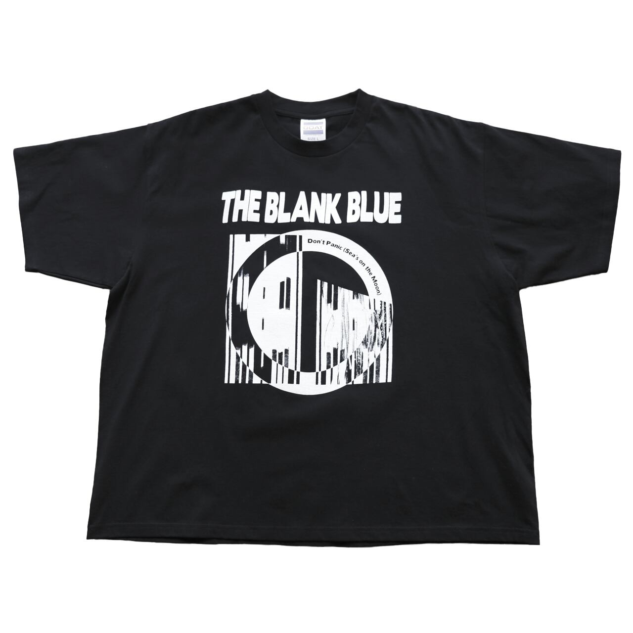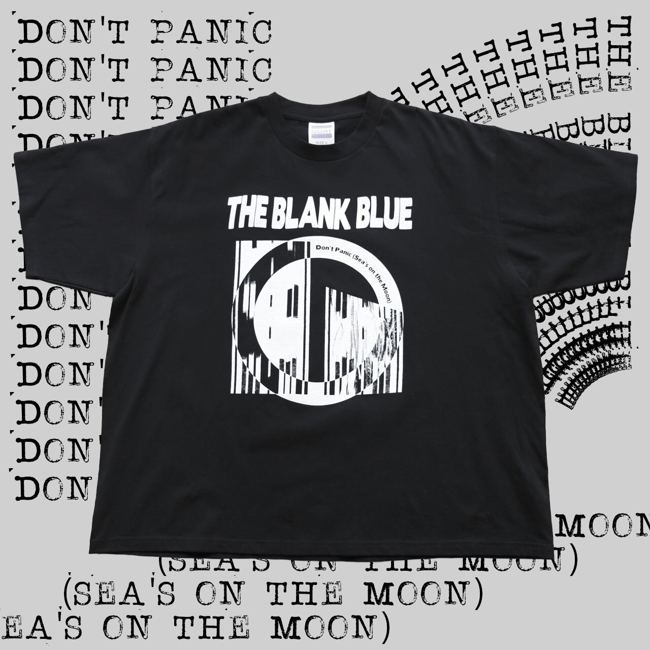 英国を代表するロックバンド、THE BLANK BLUE(ザ・ブランク・ブルー)の3rdアルバム『Don’t Panic (Sea’s on the Moon)』(邦題:月の海にて)のジャケットをシルクスクリーンで落とし込んだボックスシルエットのTシャツ。
